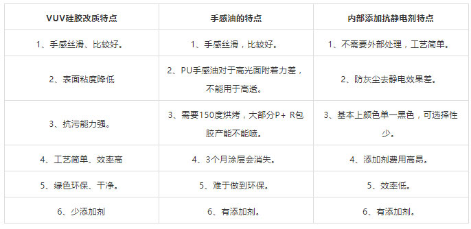 UV硅膠表面改質(zhì)概述:主要通過(guò)深紫外線對(duì)硅膠制品進(jìn)行照射,使硅膠內(nèi)部硅膠油析出,單體硅原子在硅膠表面與游離光子、活性氧原子結(jié)合重新排布,使硅膠表層分子結(jié)構(gòu)更加精密,從而在硅膠表面形成保護(hù)層,祛除硅膠表層的黏性、靜電,做到不粘灰塵,手感絲滑的效果。比常規(guī)噴硅膠油,產(chǎn)品優(yōu)勢(shì)明顯,效果時(shí)久,終身有效。是目前硅膠手機(jī)殼、手環(huán)、防滑墊、燈帶、寵物用具、情趣用品等硅膠制品新型表面改質(zhì)環(huán)保工藝。