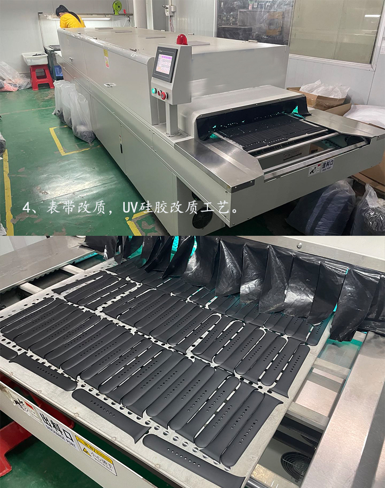 VUV紫外線硅膠表面改質(zhì)概述:主要通過深紫外線對硅膠制品進行照射,使硅膠內(nèi)部硅膠油析出,單體硅原子在硅膠表面與游離光子、活性氧原子結(jié)合重新排布,使硅膠表層分子結(jié)構(gòu)更加精密,從而在硅膠表面形成保護層,祛除硅膠表層的黏性、靜電,做到不粘灰塵,手感絲滑的效果。比常規(guī)噴硅膠油,產(chǎn)品優(yōu)勢明顯,效果時久,終身有效。是目前硅膠手機殼、手環(huán)、防滑墊、燈帶、寵物用具、情趣用品等硅膠制品新型表面改質(zhì)環(huán)保工藝。