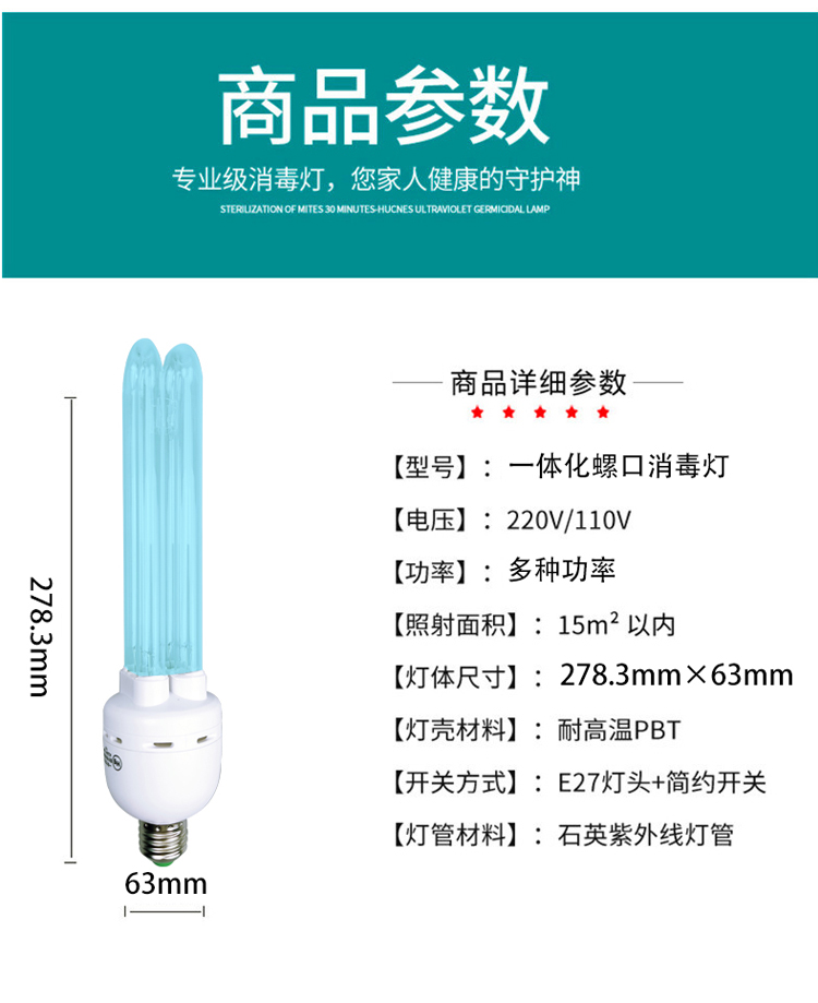 供應(yīng)38W家用螺旋燈頭遙控定時紫外線殺菌燈