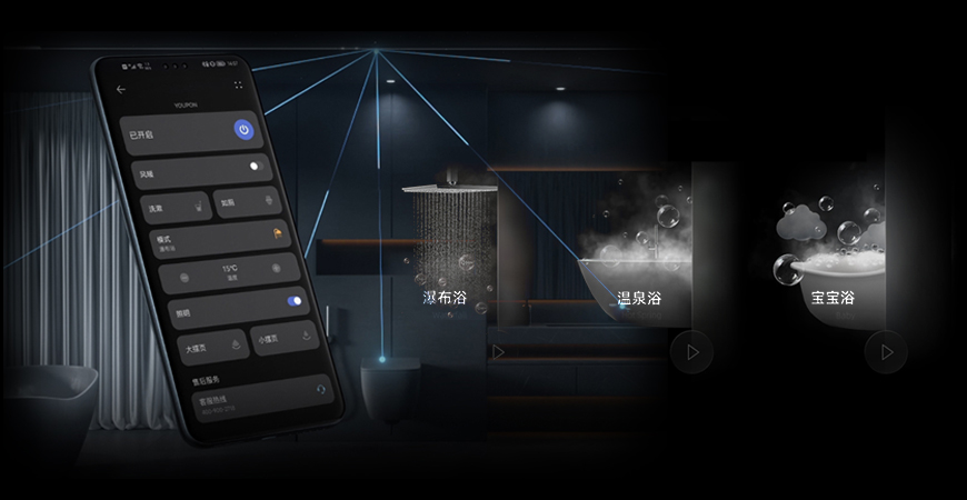 TFT智慧屏預設瀑布浴、溫泉浴、寶寶浴三大場景。