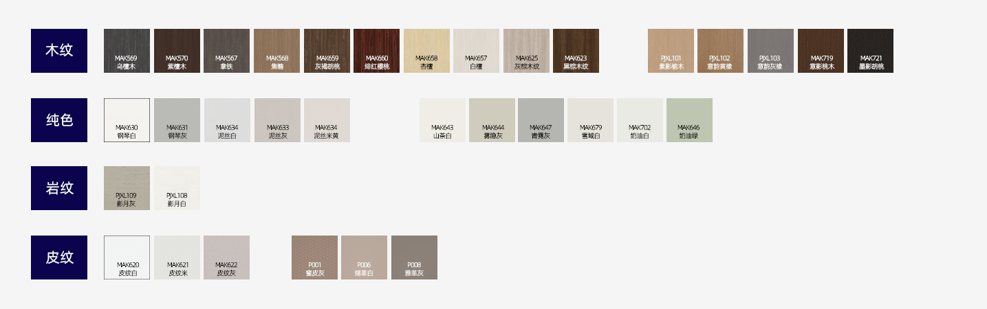 木紋、純色、巖紋、皮紋、布紋,